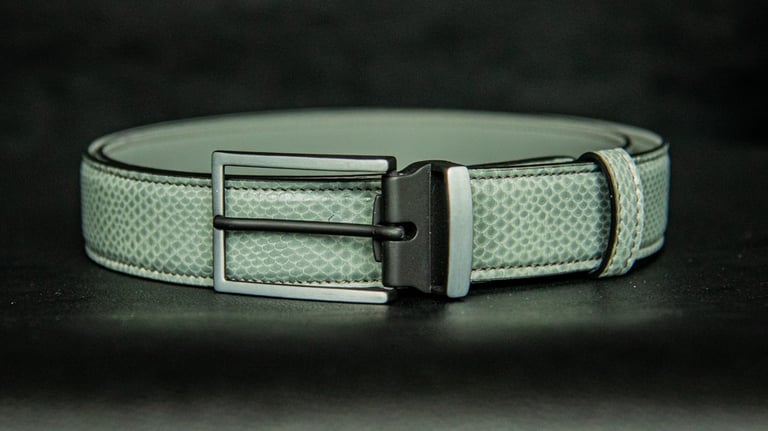 Cintura da uomo in Melavyp stampa pitone, materiale ecosostenibile ricavato dagli scarti di mela, che unisce eleganza e innovazione. L’interno in Melabuk, morbido come il nabuk, garantisce comfort e resistenza. La fibbia in Cataforesi Nero Satinato con Protezione Opaca e monachina sganciabile aggiunge un dettaglio tecnico e sofisticato. Disponibile in varie taglie, è l’accessorio ideale per look formali e raffinati, perfetto per chi cerca stile distintivo e sostenibilità.